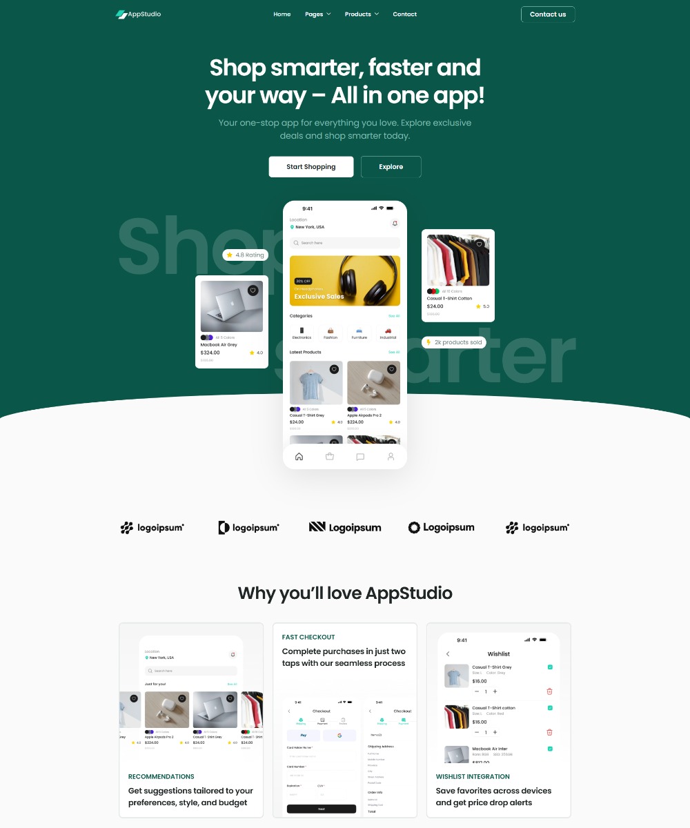 AppStudio – Mobile App & Startup Showcase Elementor Template