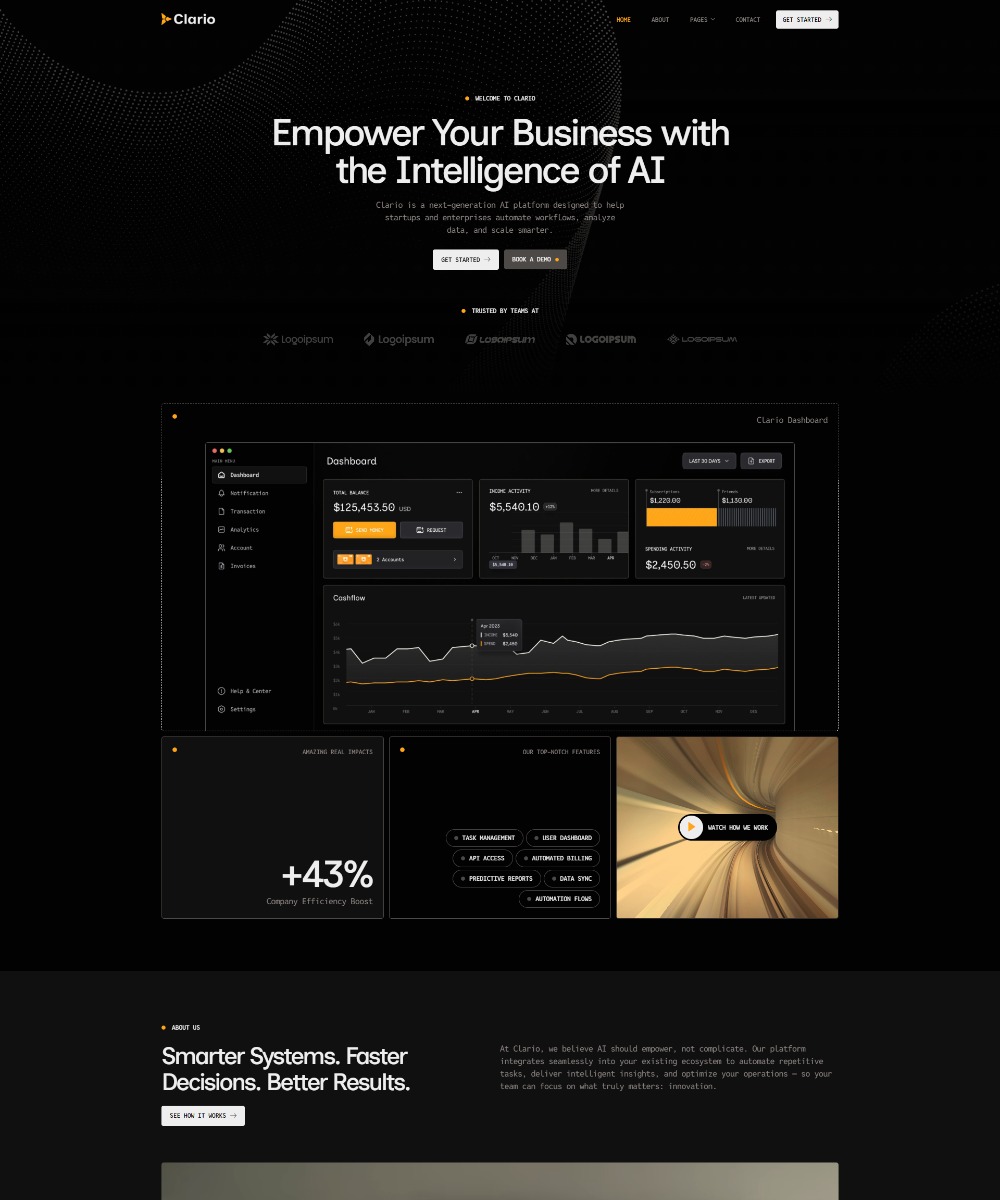 This Elementor template features responsive design, fast loading pages, and sections tailored for pricing, team, testimonials, and lead generation. Clario makes it easy to build a professional and conversion-focused website without coding. Get online quickly with a style that matches your innovation and grow your AI or SaaS brand with confidence.