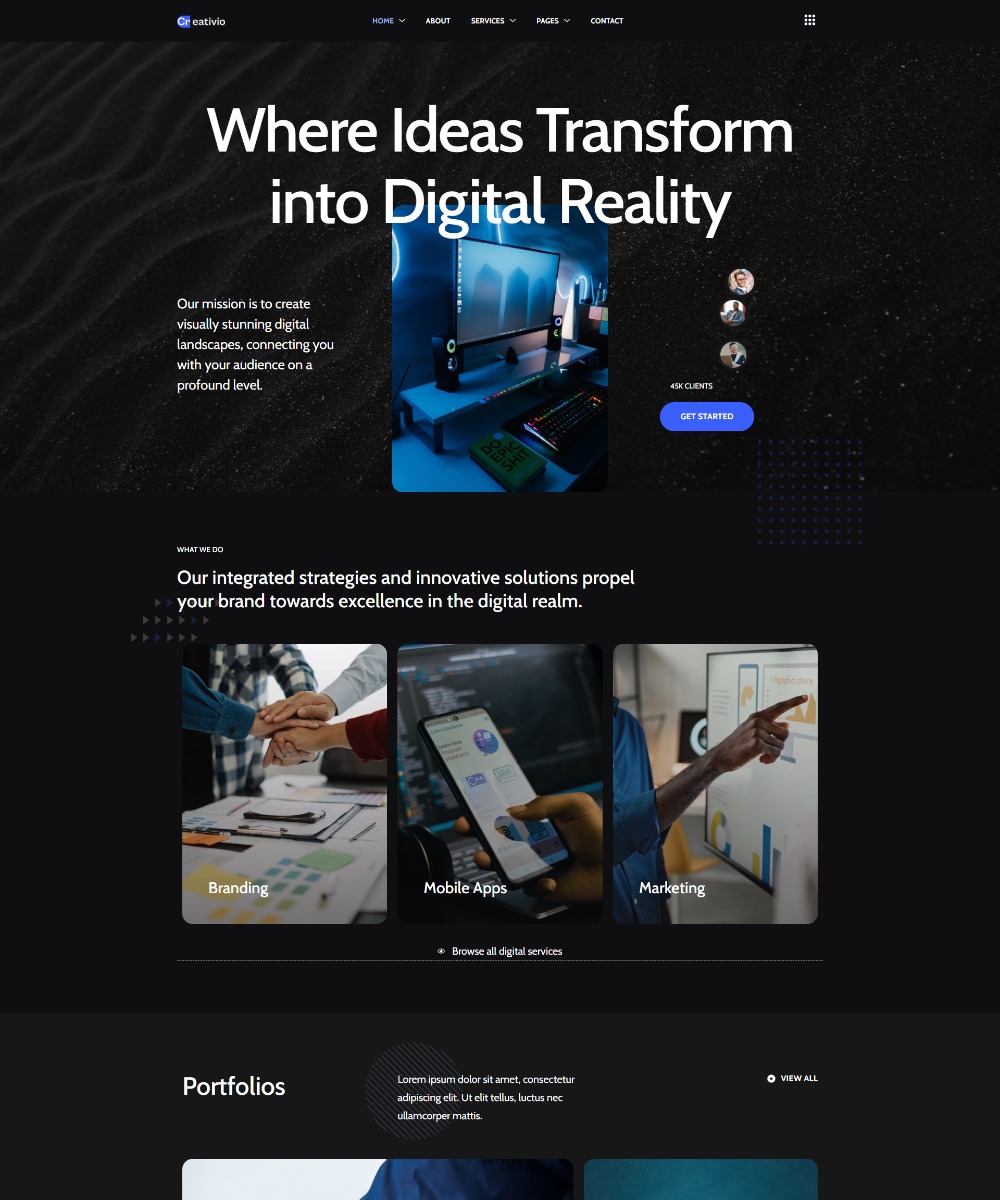 Creativio is a modern Elementor template built with Elementor for digital marketing agencies and professional portfolios. This design offers clean layouts and flexible sections to showcase services, case studies, client testimonials, and team highlights. It’s crafted to help your agency stand out online with a polished, user-friendly experience that drives engagement and conversions.