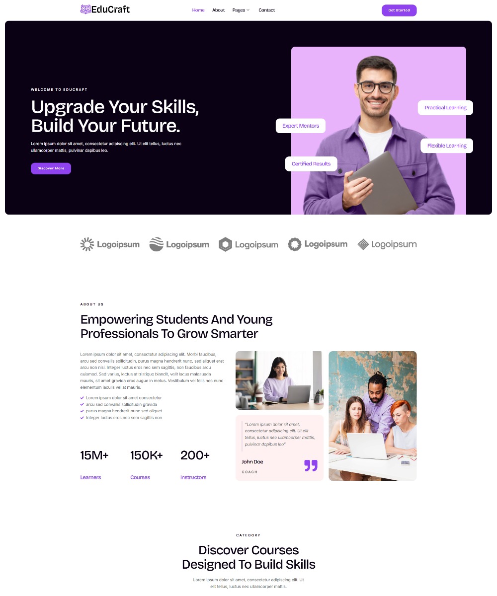 With intuitive navigation and ready-to-customize sections, EduCraft helps you launch your education site quickly. The SEO friendly design ensures better visibility on search engines, helping learners find your courses online. Whether you are building a tutoring site, e-learning portal, or skill development platform, EduCraft brings a professional look without coding, making it ideal for educators and entrepreneurs.