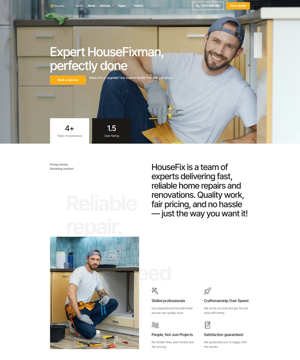 HouseFix is a clean and professional Elementor template built with Elementor for home repair and handyman service websites. It offers intuitive layouts designed to showcase your services, team, and customer reviews with ease. Ideal for local home improvement businesses, this template helps you attract more clients and present your offerings in a clear, modern way that’s SEO friendly and fast-loading.