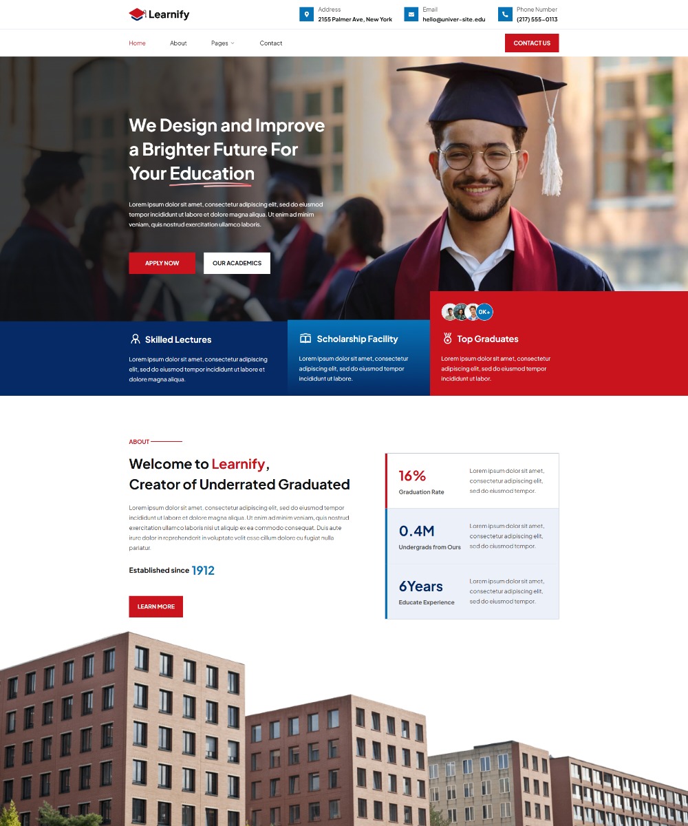 This template includes ready-to-use pages for admissions, course catalogs, student testimonials, and contact forms so you can launch your site quickly without coding. Built with Elementor’s drag-and-drop interface, Learnify makes customizing colors, fonts, and sections smooth and intuitive. Perfect for universities, academies, colleges, tutoring centers, and online schooling, this SEO-friendly template helps improve visibility on search engines and drives more traffic to your academic website.