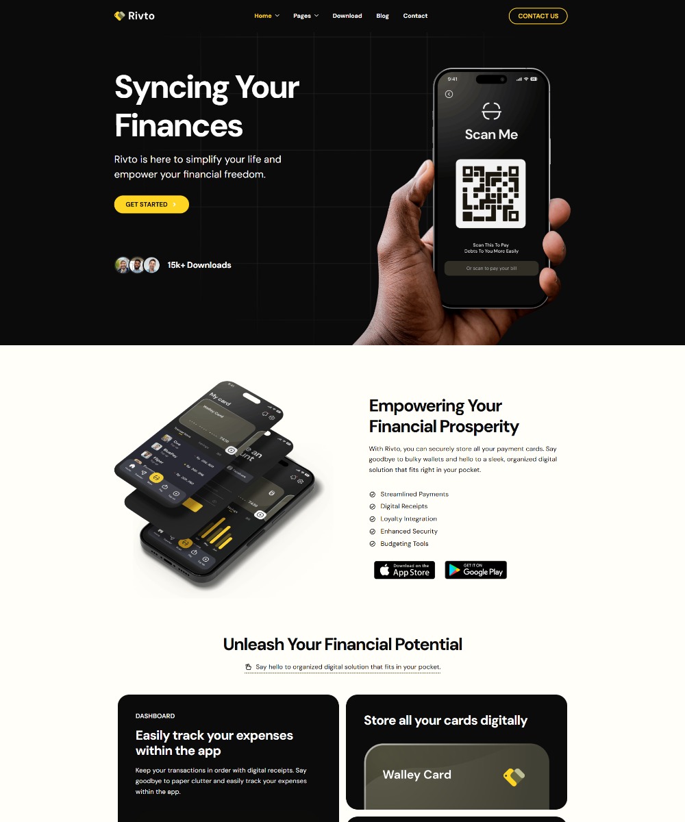 Rivto is a clean and modern Fintech Startup Mobile App Elementor Template built with Elementor, designed to help fintech businesses showcase their services with style. This template offers intuitive layouts to highlight app features, pricing plans, secure transactions, and customer testimonials. With smooth navigation and responsive design, Rivto makes it easy for visitors to explore your mobile app’s benefits and get involved. The professional look and SEO-friendly structure ensure your fintech startup stands out online and connects with potential users.
