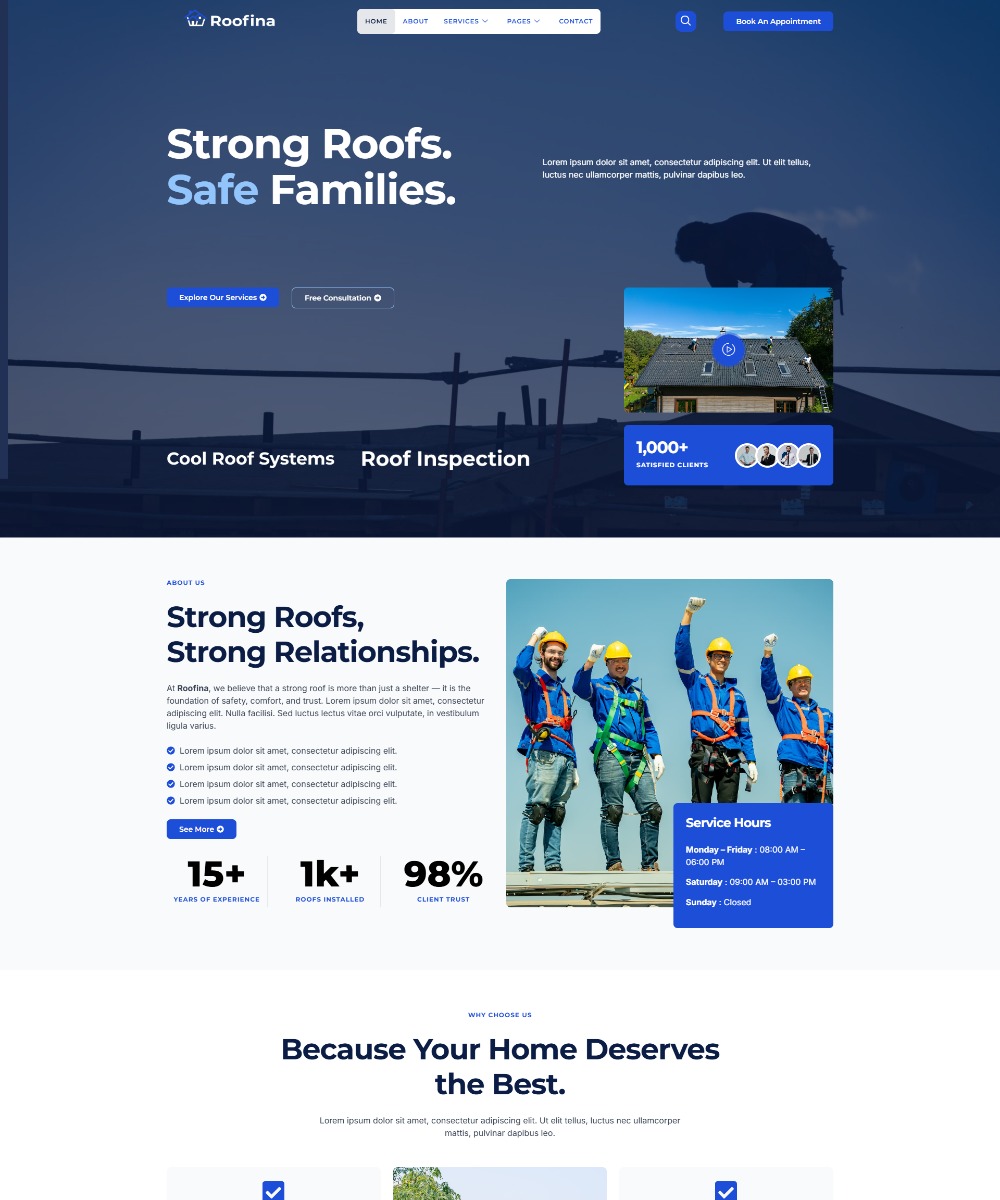 Roofina is a clean and professional Elementor template built with Elementor for roofing services, designed to help your business stand out online. Perfect for roofing contractors, roof repair specialists, and home improvement companies, this template offers modern layouts, easy customization, and ready-to-use sections to showcase services, testimonials, project galleries, and contact details. With its responsive design, Roofina ensures your site looks great on all devices and helps convert visitors into leads.